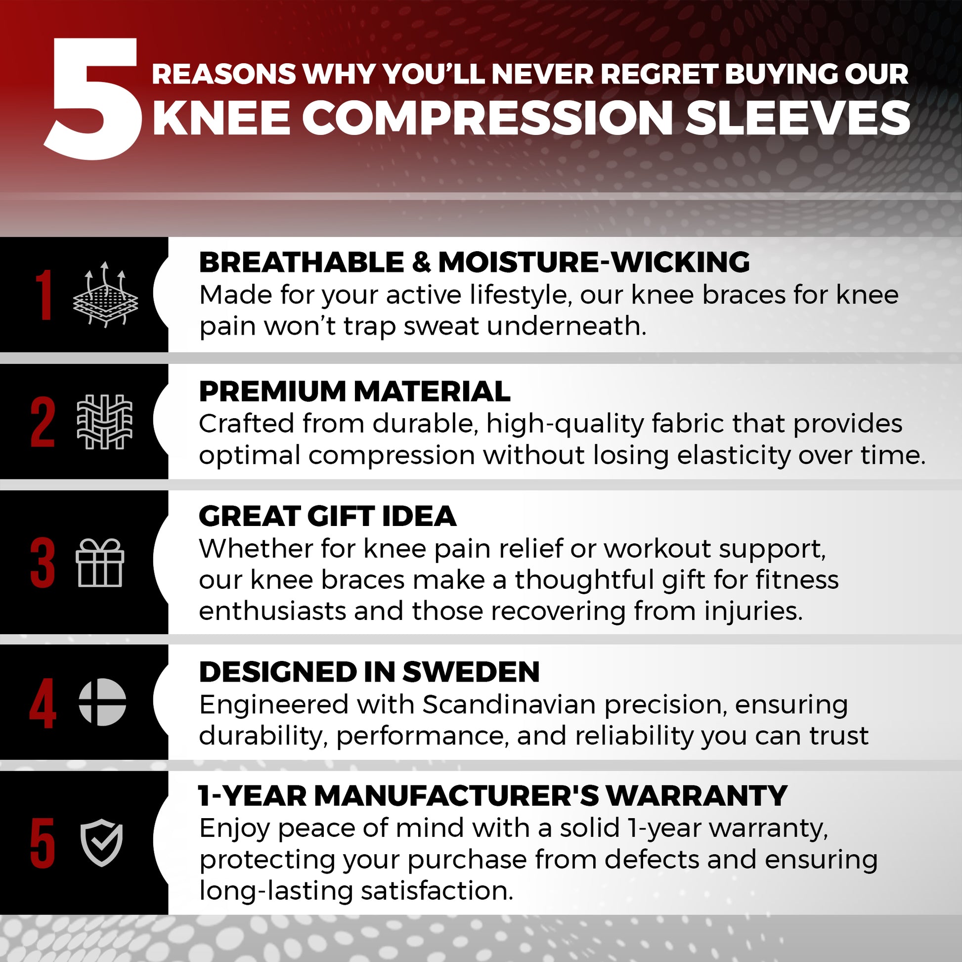- High-quality knee compression sleeves for optimal knee support. By premium weightlifting brand Nordic Lifting®