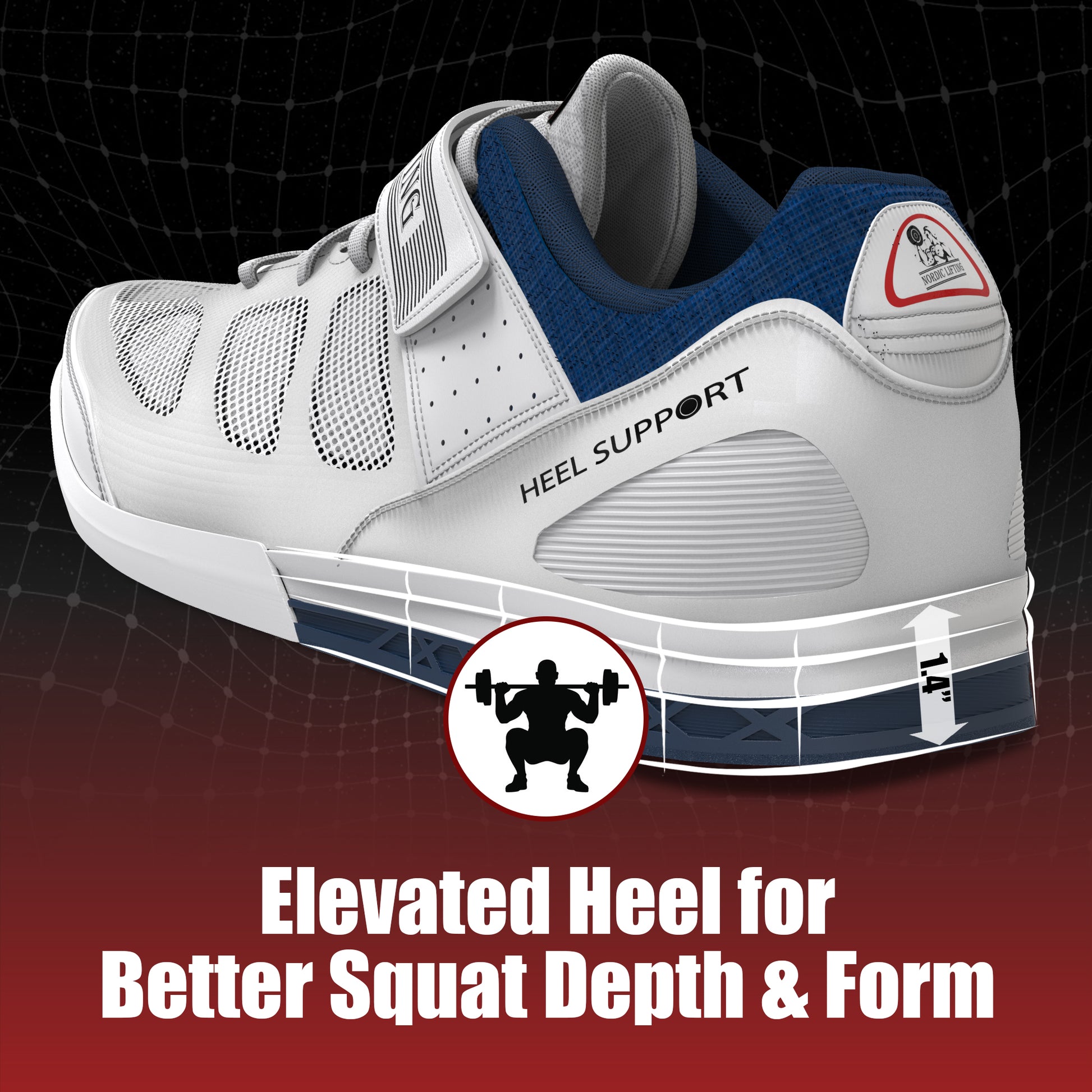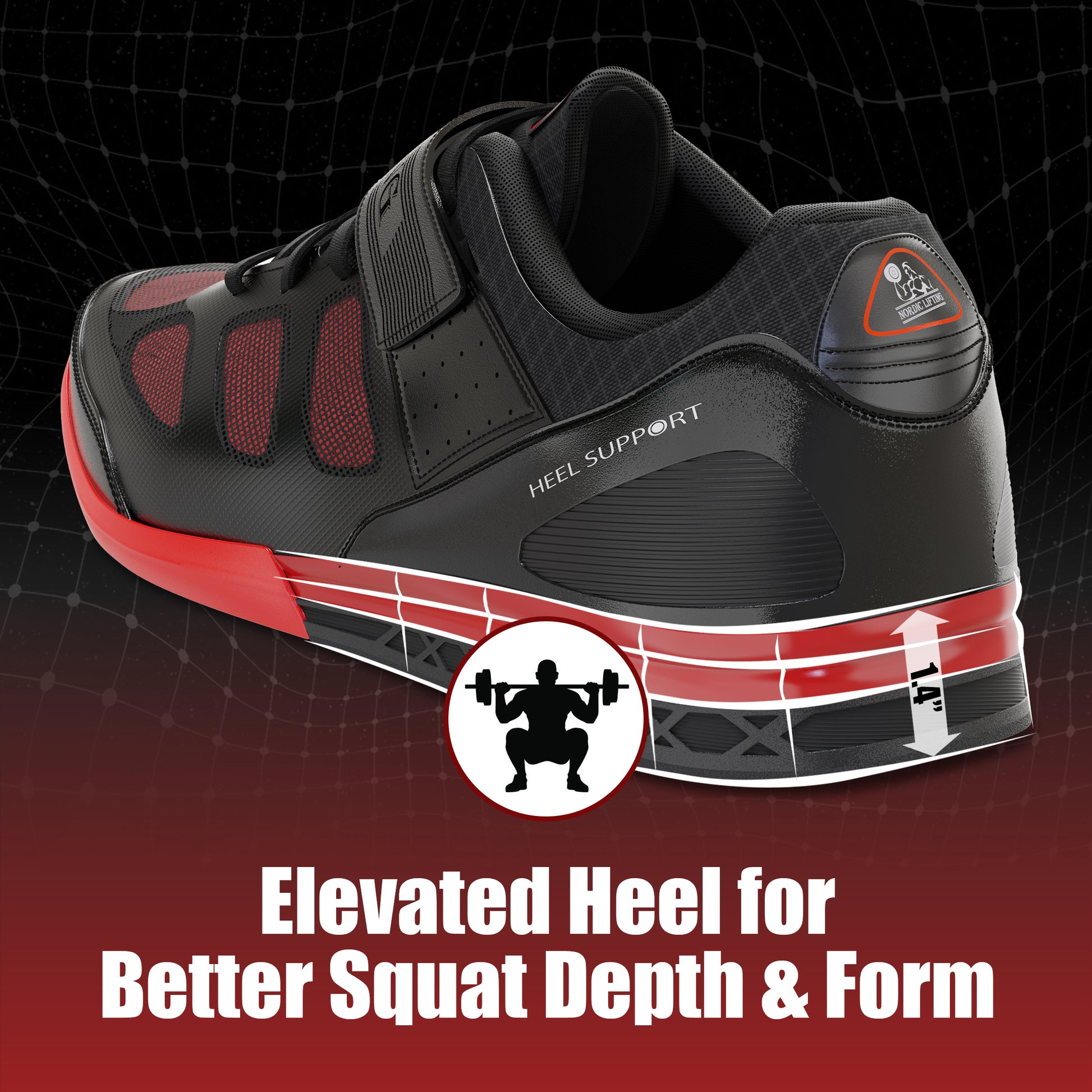 - Top-of-the-line weightlifting shoes, suitable for a wide range of workouts. By premium weightlifting brand Nordic Lifting®