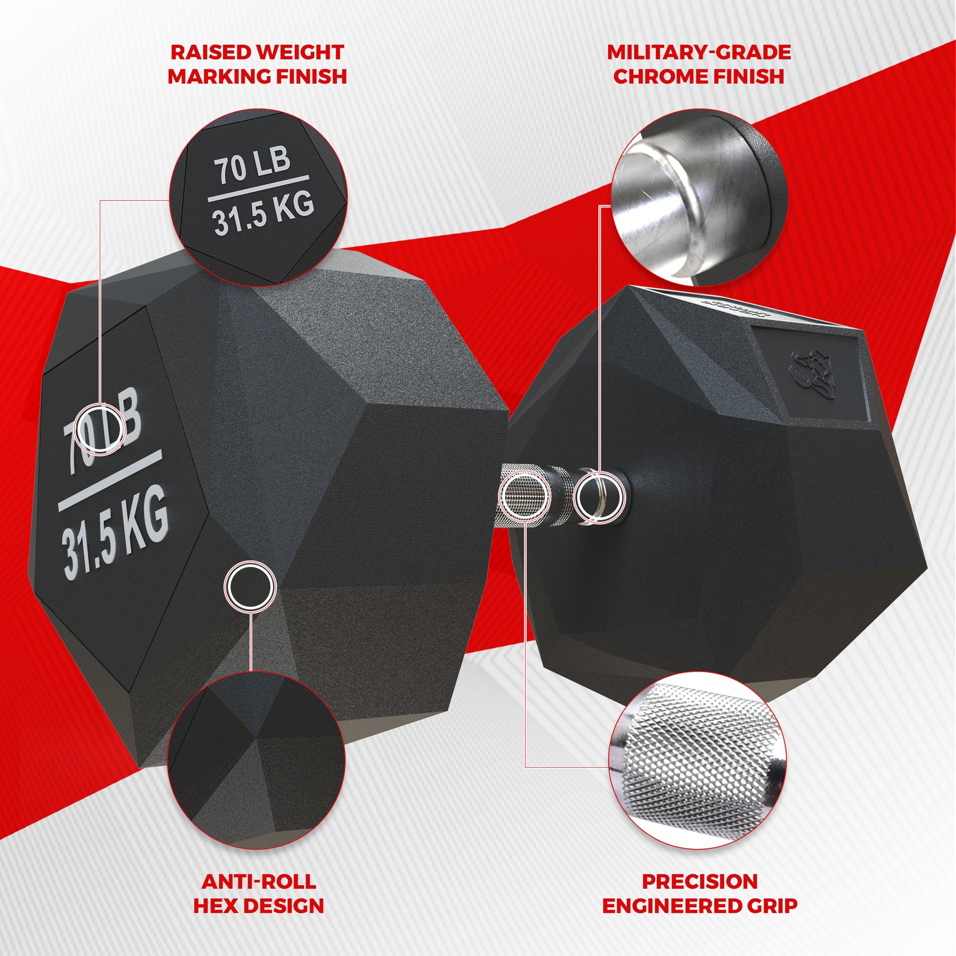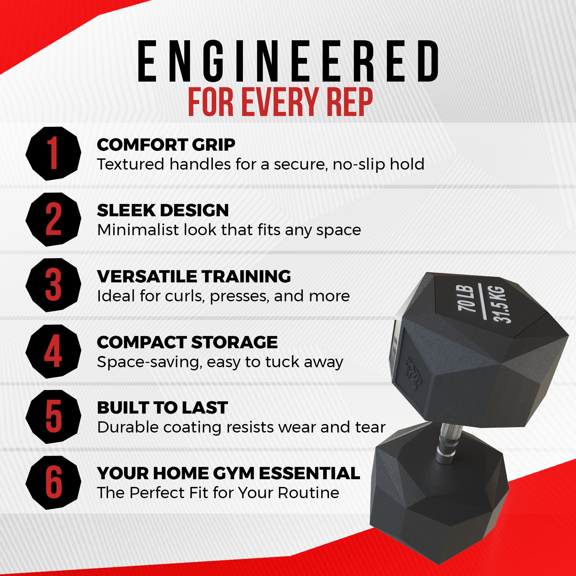 Our prism dumbbell is available from 5lb to 70lb; choose the most ideal weight for your fitness level and/or desired workout intensity. - HIGH-GRADE MATERIALS, WELL-BUILT, AND STABLE
